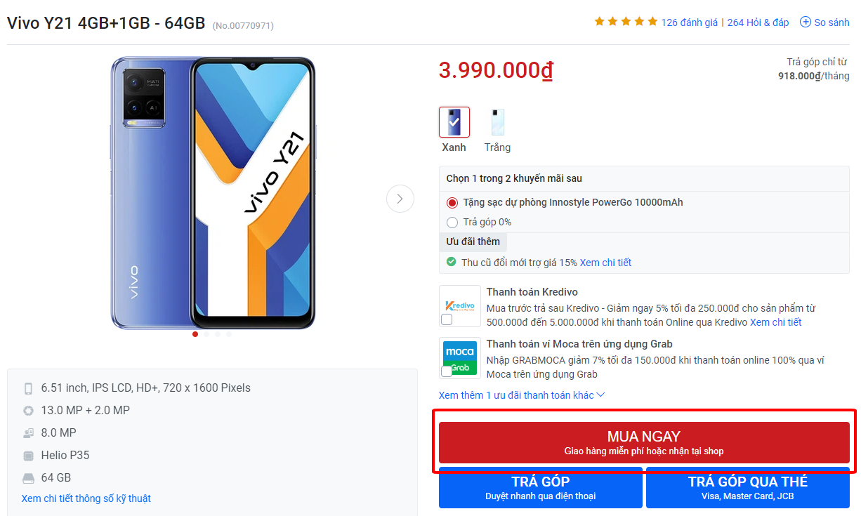 Bước 3: Truy cập vào trang website của FPT Shop, chọn sản phẩm khách muốn mua. Nhấp chọn “Mua ngay”.
