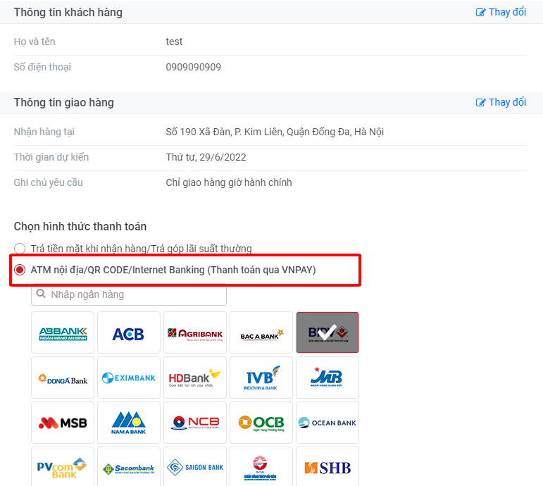 Đối với khách hàng thanh toán tại quầy:
