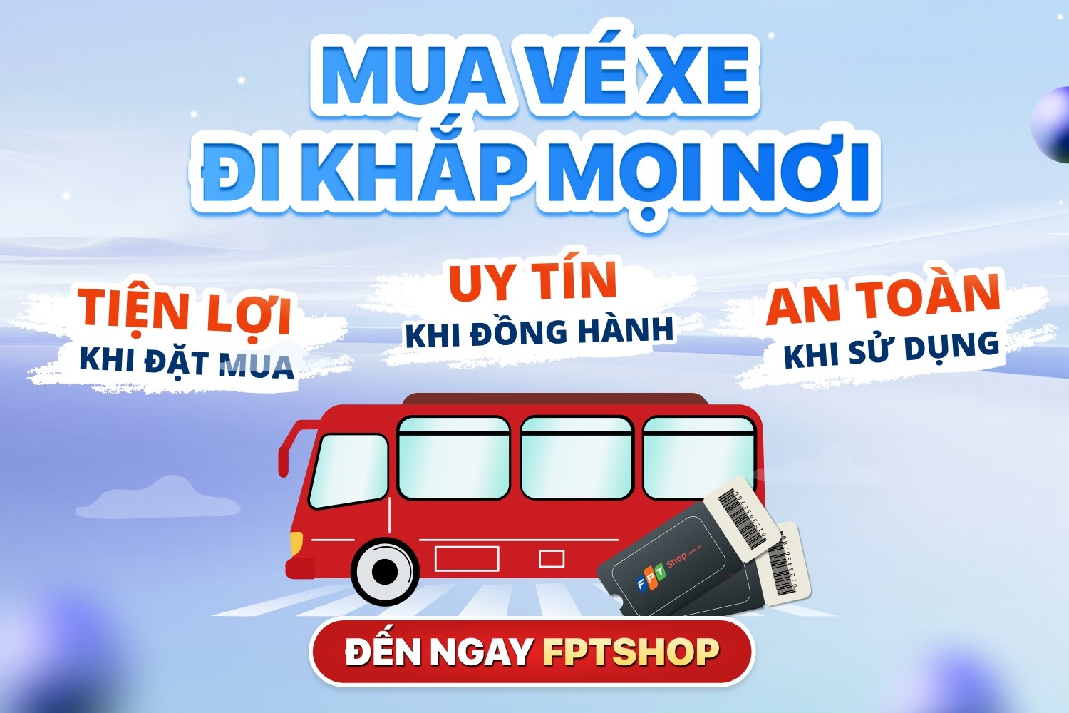 Từ tháng 02/2020, FPT Shop trở thành đơn vị cung cấp vé xe của hơn 550 hãng xe nổi tiếng có lịch trình di chuyển qua hơn 2600 tuyến đường trên cả nước. Với nhiều lợi thế vượt trội về giá, thời gian đặt vé, chính sách hoàn hủy,… FPT Shop sẽ mang đến cho khách hàng những trải nghiệm dịch vụ lý tưởng hơn so với các đại lý bán vé thông thường.