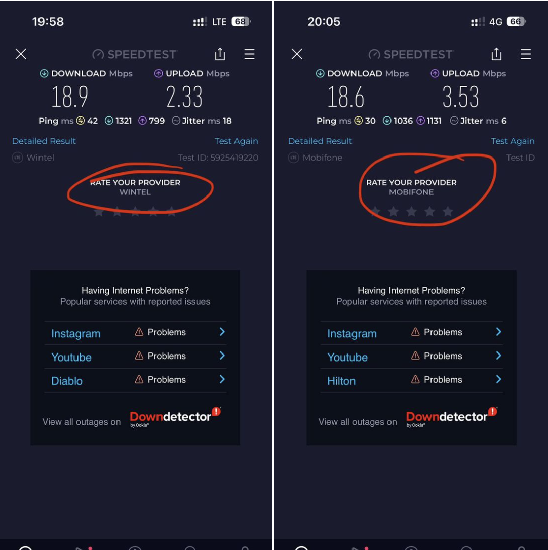 So sánh 2 mạng ảo Wintel (hạ tầng Vinaphone) và FPT-MVNO (hạ tầng MobiFone) ở cùng điều kiện