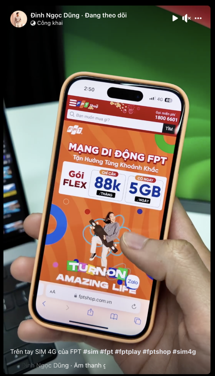 Ngoài các bài viết, SIM FPT cũng nhận được nhiều đánh giá tích cực trong video đăng bài của các diễn đàn công nghệ. Nổi bật là của Anh Đinh Ngọc Dũng moderator của tạp chí Tinh Tế, chia sẻ: “Với sự xuất hiện của mạng di động FPT, người dùng không chỉ được trải nghiệm những gói cước hấp dẫn mà còn hưởng các ưu đãi đặc biệt từ FPT. Tính linh hoạt, giá cước hợp lý và tốc độ mạng ổn định được xây dựng trên hạ tầng của Mobifone là những yếu tố làm nổi bật mạng di động FPT trong cộng đồng người dùng Việt Nam.”
