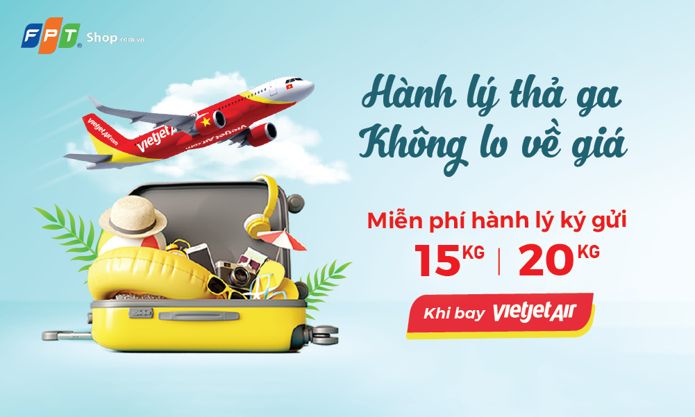 Miễn phí đến 20kg hành lý ký gửi khi mua vé máy bay nội địa Vietjet Air tại FPT Shop
