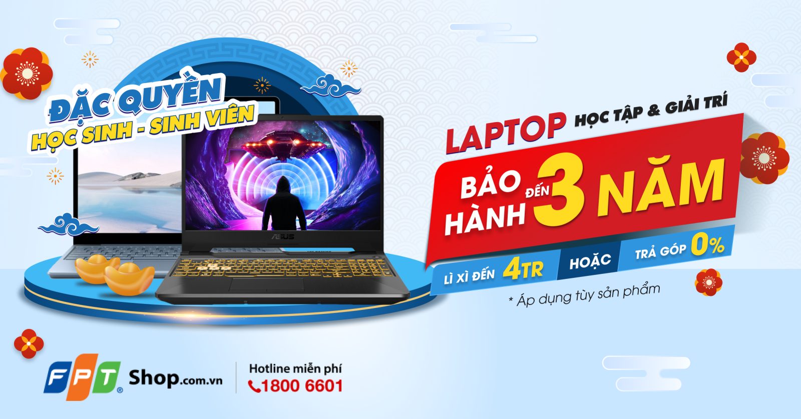 Đặc quyền dành cho học sinh sinh viên: Mua laptop, FPT Shop bảo hành đến 3 năm và lì xì đến 4 triệu
