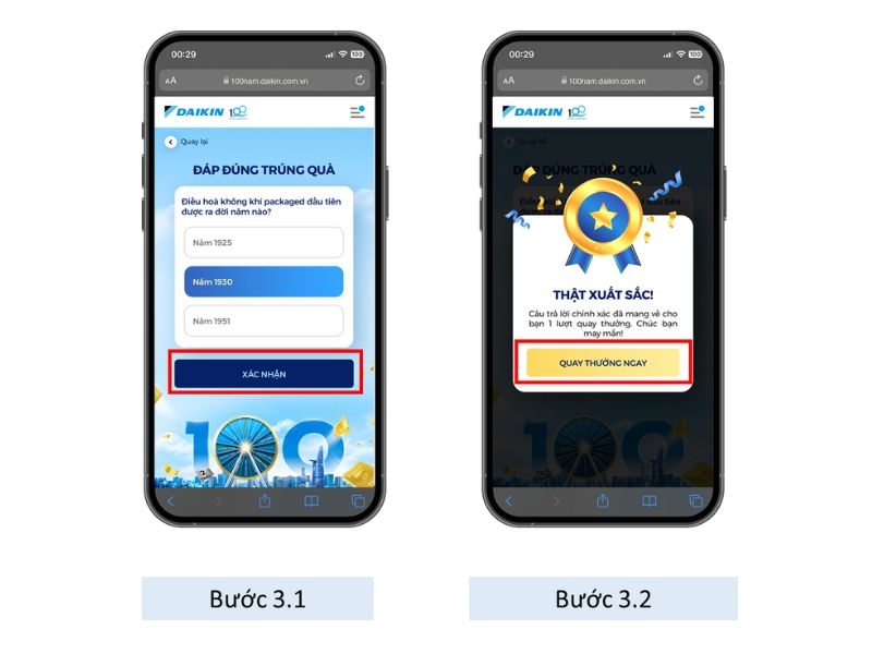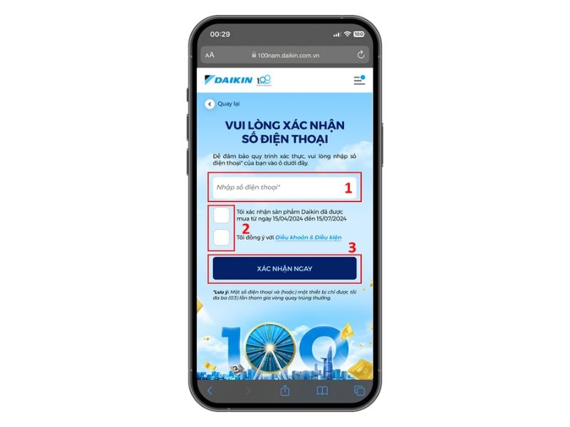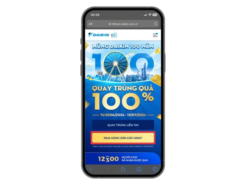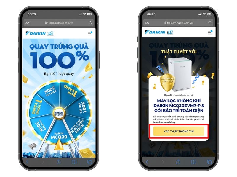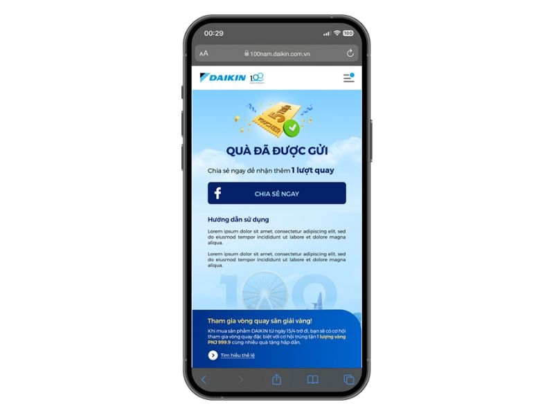 Chương trình “Mừng Daikin 100 năm, quay trúng quà 100%” sẽ được tổ chức trên nền tảng landing page với các bước tham gia như sau: