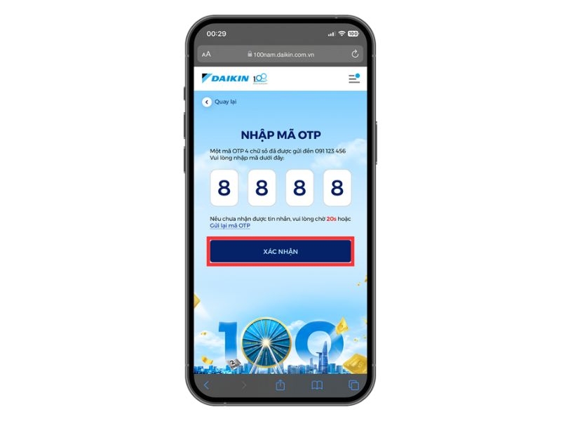 Bước 3: Khách hàng nhập mã OTP và bấm “Xác nhận”.