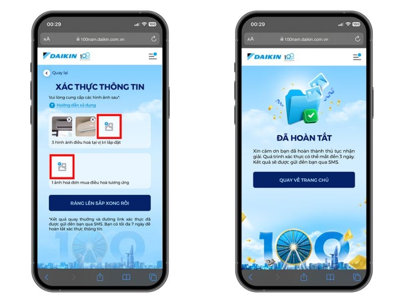 Đối với giải Nhất, giải Nhì và giải Sáu (voucher điện tử Daikin): Khách hàng sẽ nhận được tin nhắn SMS chứa mã phiếu ưu đãi từ tên người gửi là Daikin_VN.