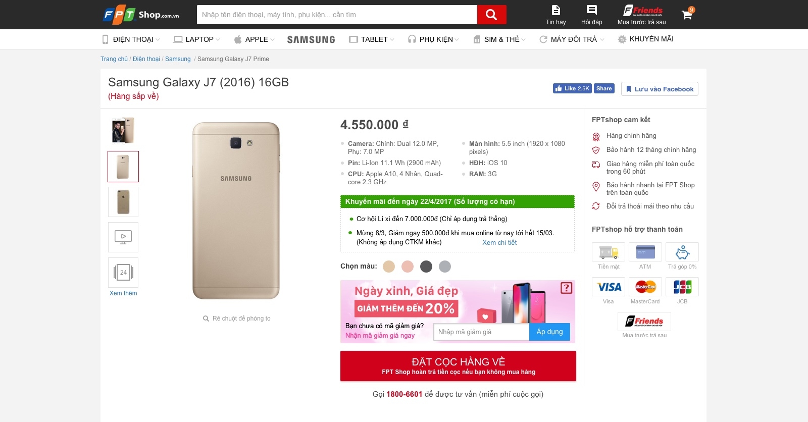 Sản phẩm mua tại FPT Shop là hàng chính hãng, bạn có thể chọn chọn mua trực tiếp tại cửa hàng, mua online hoặc gọi hotline 1800 6601 để được tư vấn, mua hàng nhanh.