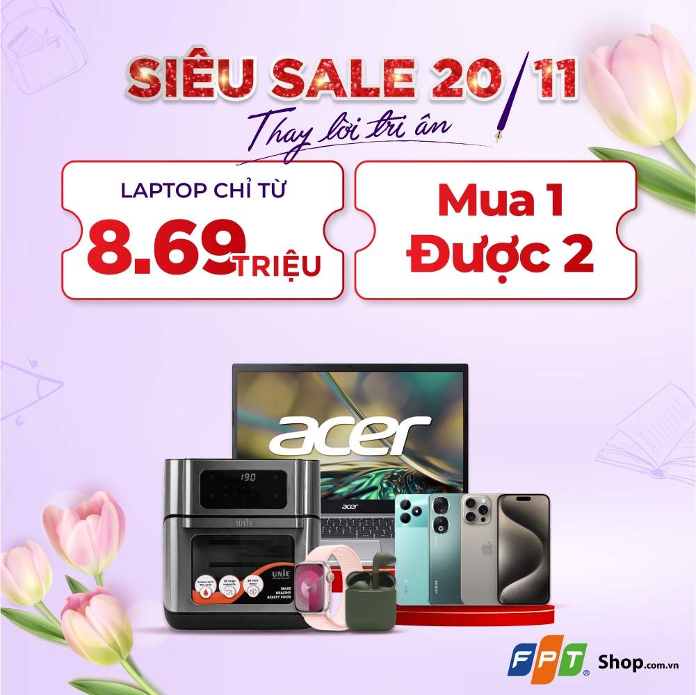 FPT Shop chính thức triển khai chương trình “Siêu sale 20/11 – Thay lời tri ân” với hàng loạt sản phẩm được giảm giá vô cùng hấp dẫn.