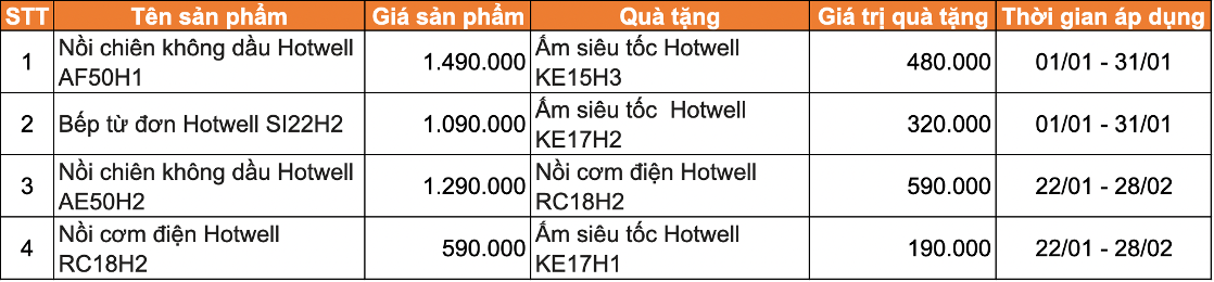 Tết đến xuân sang, FPT Shop ưu đãi mua 1 tặng 1 từ ngày 01/01 – 28/02/2022 cho các phẩm gia dụng Hotwell dưới đây:
