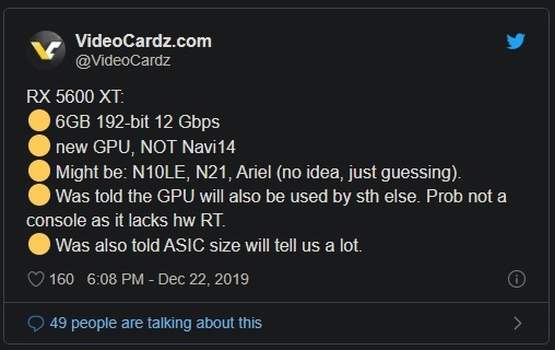 RX 5600 XT có thể được ra mắt tại sự kiện CES 2020 vào đầu tháng 1 sắp tới.