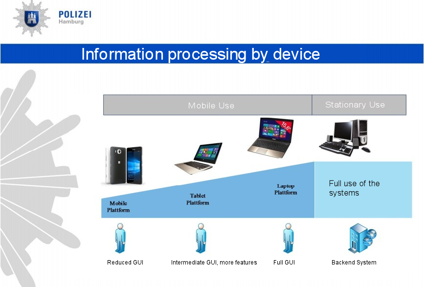 Cụ thể, sở cảnh sát Hamburg Đức vừa mua 900 chiếc Lumia với giá 100,000 Euro tương đương với hơn 107,500 USD nhằm giảm thời gian cho việc báo cáo. Nền tảng Windows Phone giúp cảnh sát trở nên hiệu quả hơn khi các báo cáo được cập nhật một cách nhanh chóng trong khi cảnh sát vẫn có thể cơ động và truy cập ngay vào cơ sở dữ liệu của cảnh sát.