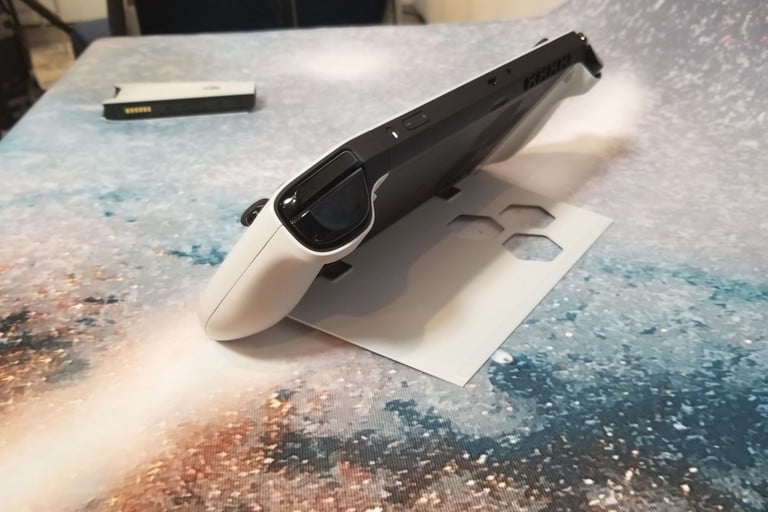 Cỗ máy UFO này có thiết kế bên ngoài giống với Nintendo Switch với một màn hình được tích hợp rất nhiều tính năng quan trọng. Ở mặt sau chúng ta có một miếng kickstand và ở cạnh bên là 2 controller có thể tháo rời hoặc lắp vào được, tương tự như Joycon của Switch vậy.
