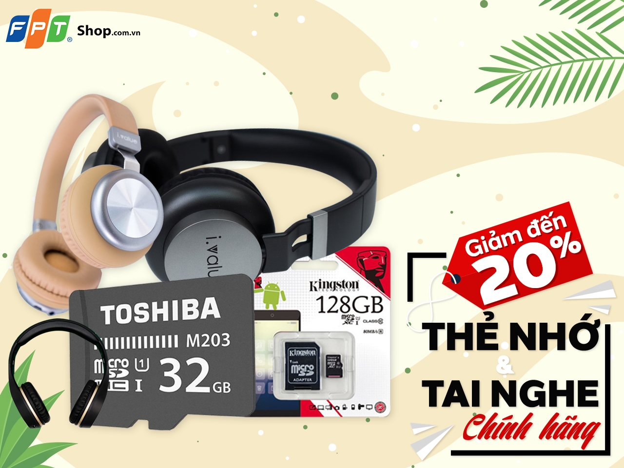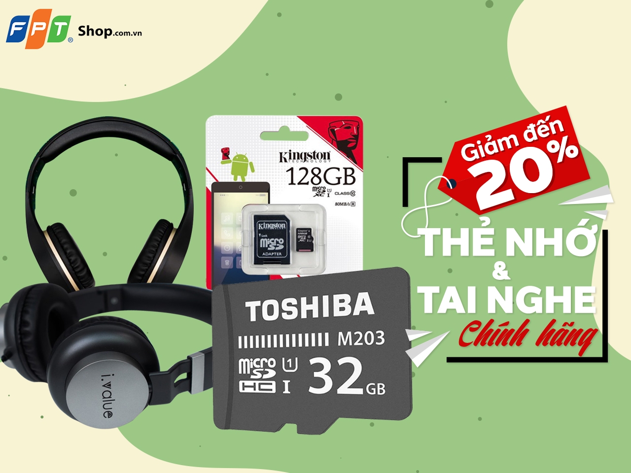 FPT Shop giảm đến 20% cho tai nghe và thẻ nhớ chính hãng