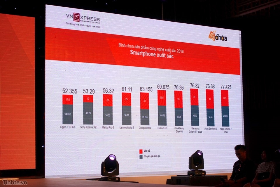Tối qua, VnExpress đã tổ chức thành công Lễ trao giải Chương trình bình chọn sản phẩm công nghệ xuất sắc nhất – Tech Awards 2016. Sau gần hai tháng diễn ra, năm hạng mục giải thưởng với 7 nhóm sản phẩm đã được trao cho những sản phẩm xuất sắc nhất của năm. Trong đó, iPhone 7 Plus đã trở thành chiếc điện thoại của năm sau khi vượt qua các đối thủ sừng sỏ khác như Asus Zenfone 3, Samsung Galaxy S7 egde hay Huawei P9.