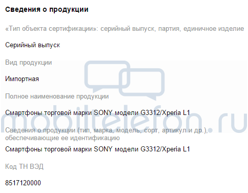 Sony đã tiết lộ 4 chiếc smartphone mới vào năm 2017 (Xperia XZ Premium, Xperia XZs, Xperia XA1 và Xperia XA1 Ultra) nhưng rõ ràng sẽ Sony không dừng lại ở đây. Theo 1 nguồn tin từ 1 trang báo uy tín ở Nga, một chiếc điện thoại Android mới của Sony có thể được công bố vào cuối năm nay vỡi mã G3312 có thể là Xperia L1.