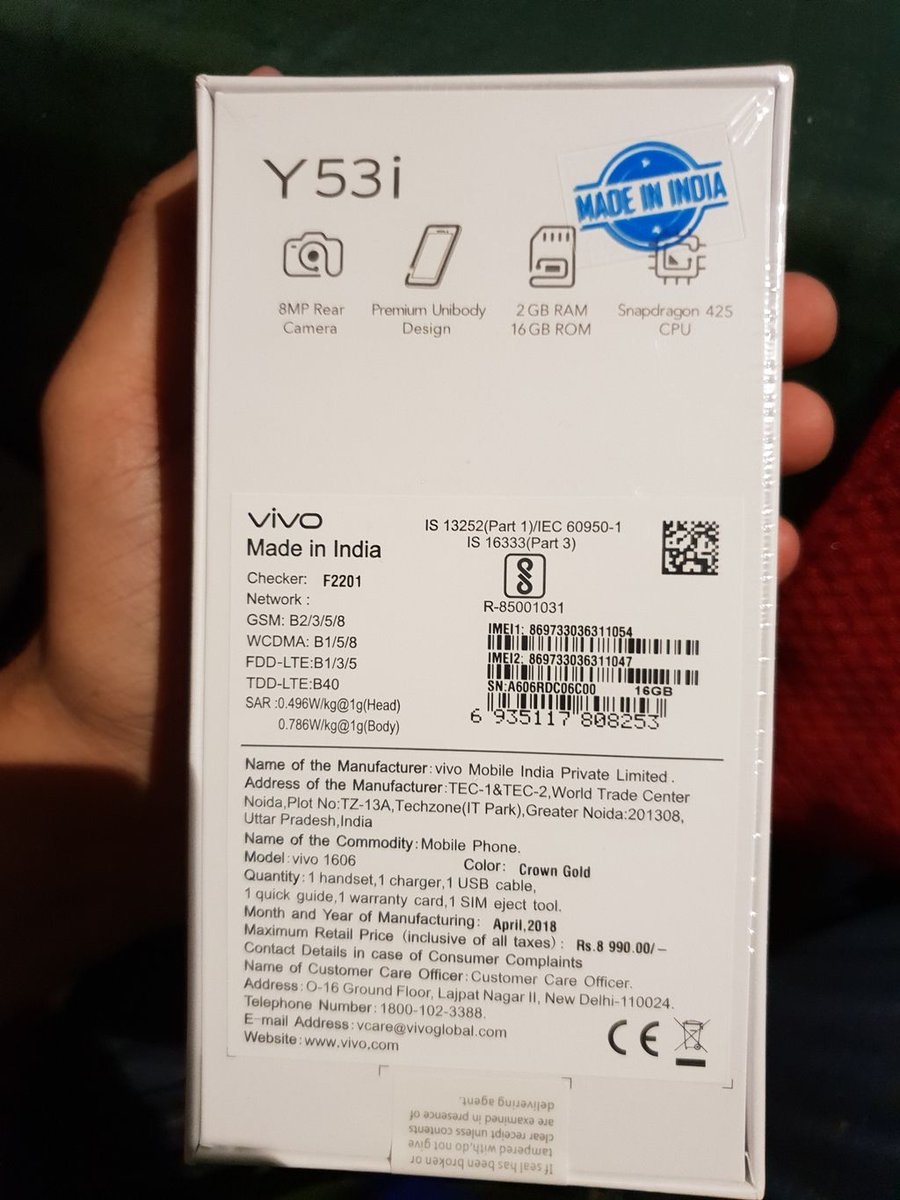 Cụ thể, thiết bị được Vivo ra mắt tại thị trường Ấn Độ có tên gọi là Vivo Y53i. So với người tiền nhiệm của mình, ngoại hình của chiếc máy này gần như không có sự thay đổi. Vivo Y53i sử dụng màn hình 5 inch có độ phân giải 960x540p với tỉ lệ 16:9 truyền thống. Máy được trang bị con chip Snapdragon 425, 2GB Ram cùng với 16GB bộ nhớ trong.