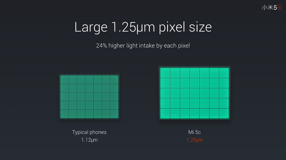 Xiaomi Mi 5c là chiếc smartphone tầm trung đầu tiên được Xiaomi trang bị camera cao cấp với độ phân giải 12MP và kích cỡ điểm ảnh lên tới 1.25 µm. Những thông số khủng cùng với chế độ chụp ảnh HDR theo từng khung hình giúp bạn có được những bức ảnh rõ nét với màu sắc chân thực ở mọi lúc mọi nơi.